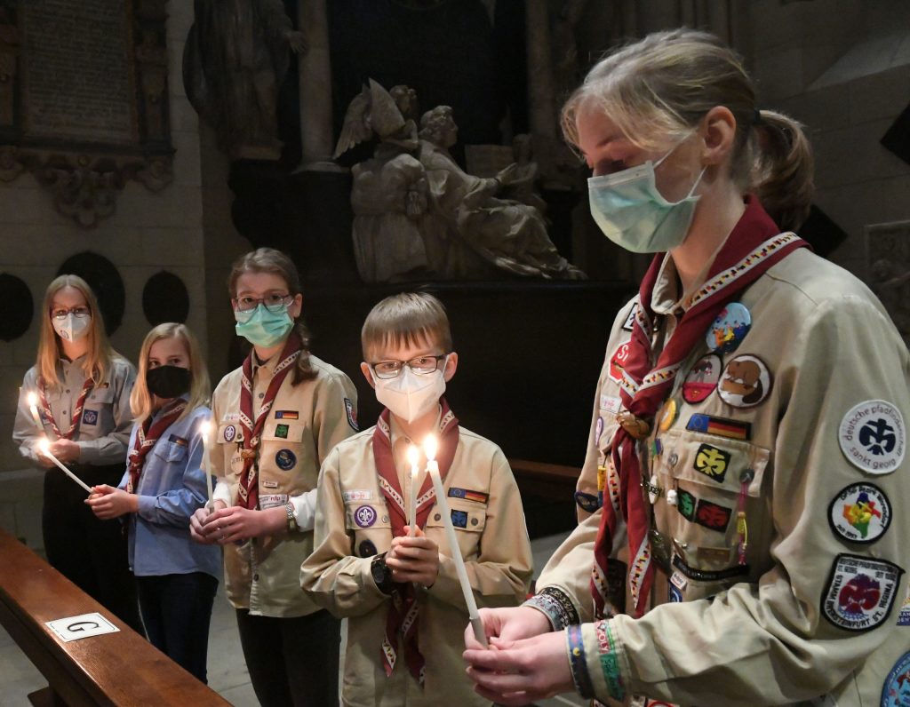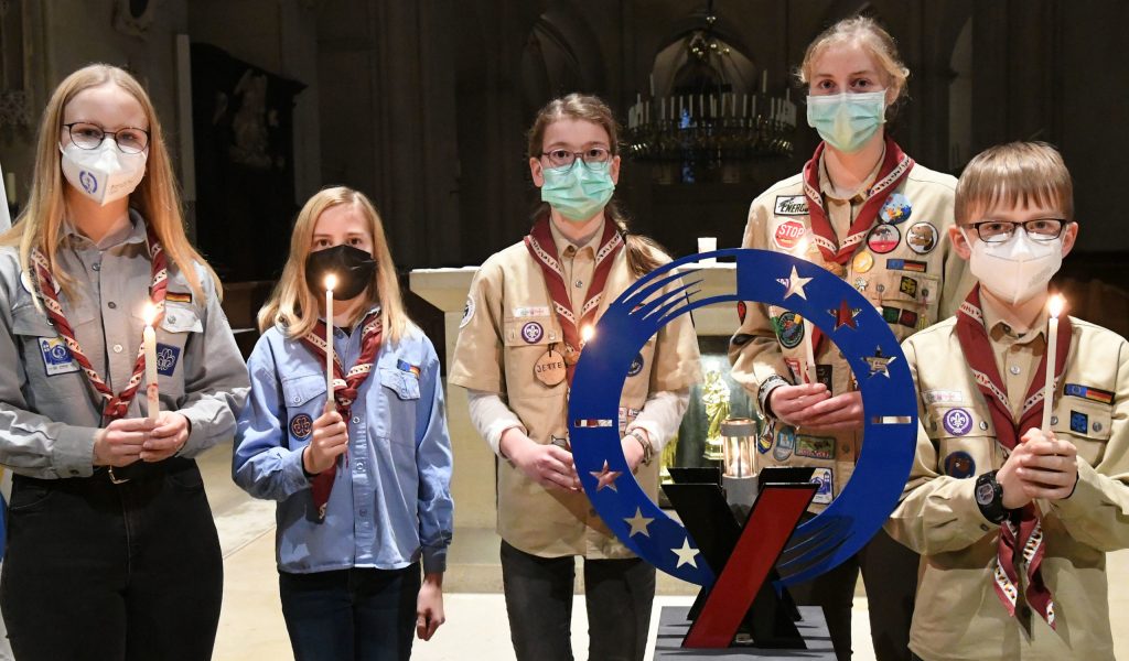 Und auch 2021 durfte unser Stamm das Licht in den Dom bringen. Dieses Mal wurde das von Jette, Dominik und Henrike getan.